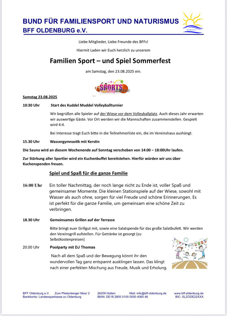 Wir sind Mitglied im Deutschen Verband für Freikörperkultur (DFK), im Stadtsportbund Oldenburg und im Hatten Touristik e.V.